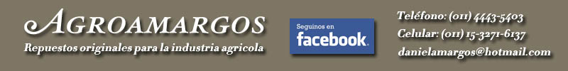 Agroamargós nació con el propósito de ofrecer a nuestros clientes repuestos originales y de primera calidad para la industria agrícola. Contamos con 20 años de experiencia en el rubro. Nos destacamos por nuestro compromiso y responsabilidad. Realizamos envíos a todo el país, y contamos con excelentes precios, que nos permiten diferenciarnos en el mercado. Permanentemente estamos abocados a superar las expectativas de nuestros clientes, somos una empresa responsable y honesta. Además, realizamos la nacionalización de piezas o productos. Esperamos su inquietud, contamos con una amplia variedad de artículos que usted podrá visualizar en nuestra página web. |